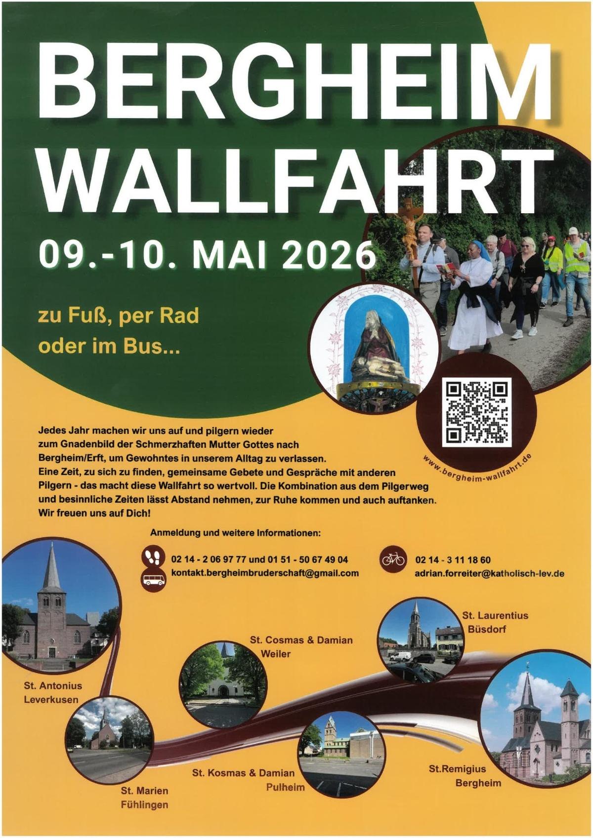 - Freitag, 22. Mai um 18.00 Uhr: Maiandacht in der Kirche St. Aldegundis, musikalisch gestaltet durch den Familiensingkreis