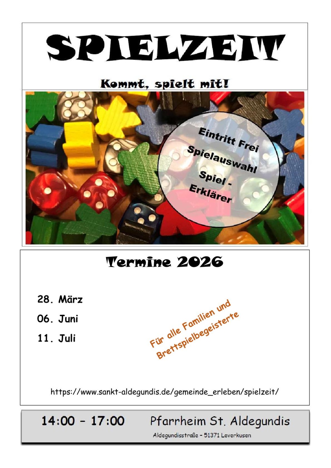 Die "Spielzeit" ist eine Gruppe von Brettspielfreunden, die sich regelmäßig im Pfarrheim von St. Aldegundis in Rheindorf trifft.