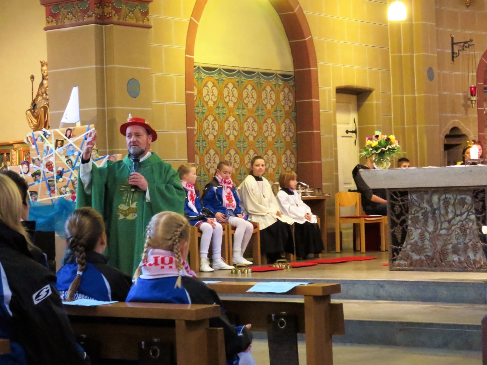 Ganz schön eng und bunt war es am Karnevalssonnstag im "Hetdörper Dom". Und das nicht nur im Altarraum, der von Prinz Ricky I, Jungfrau Manfrieda und Bauer Ralfi, zahlreichen Messdienern, Pfarrer Pitter, Diakon Christian, Gemeindereferent Tünn und Pastoralreferentin Judith gut gefüllt war, sondern auch in den Bänken.